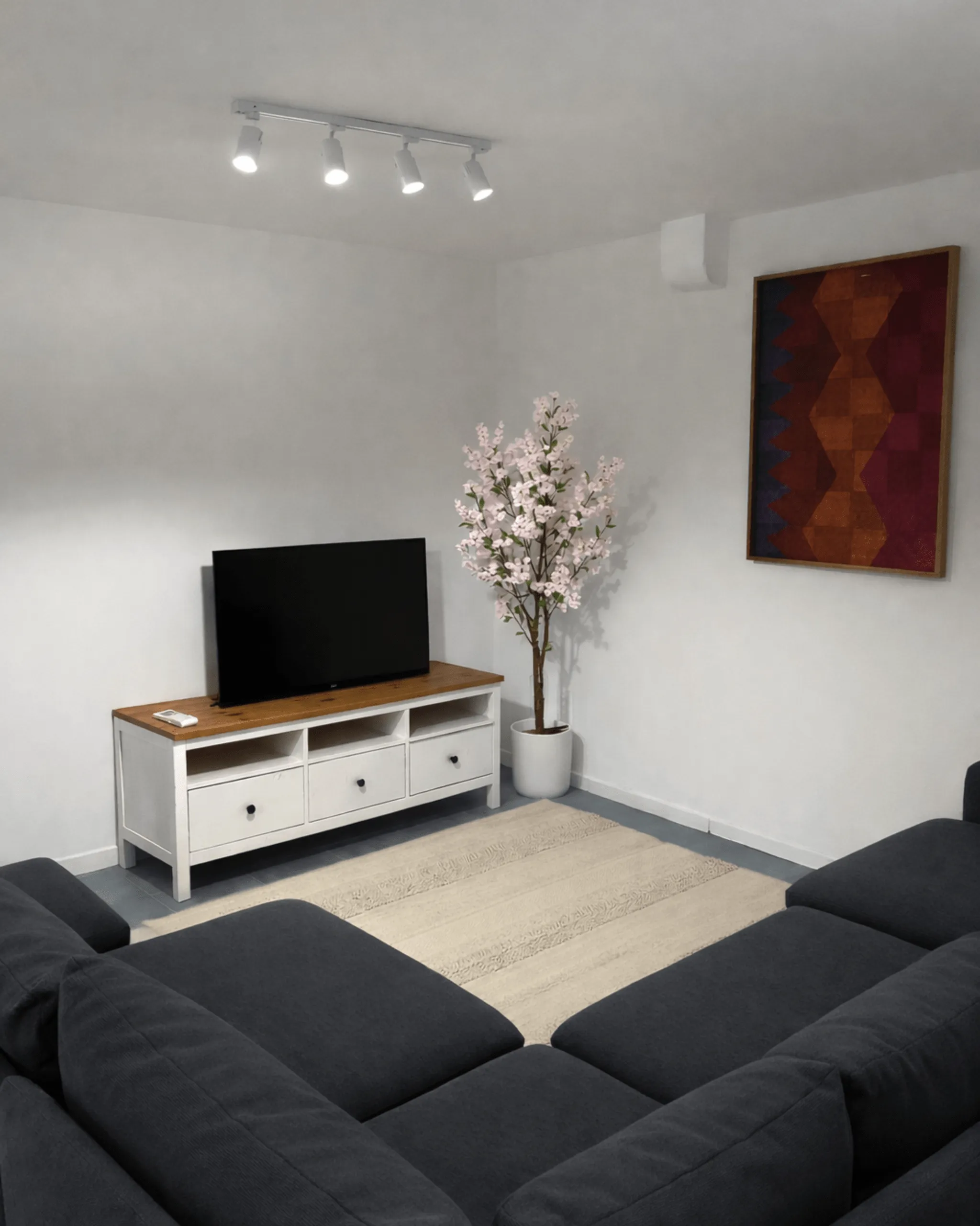 Located right in the center of Sault, the apartment includes two bedrooms, a work area, a separate bathroom, a separate toilet, and a bright living room with an open kitchen.